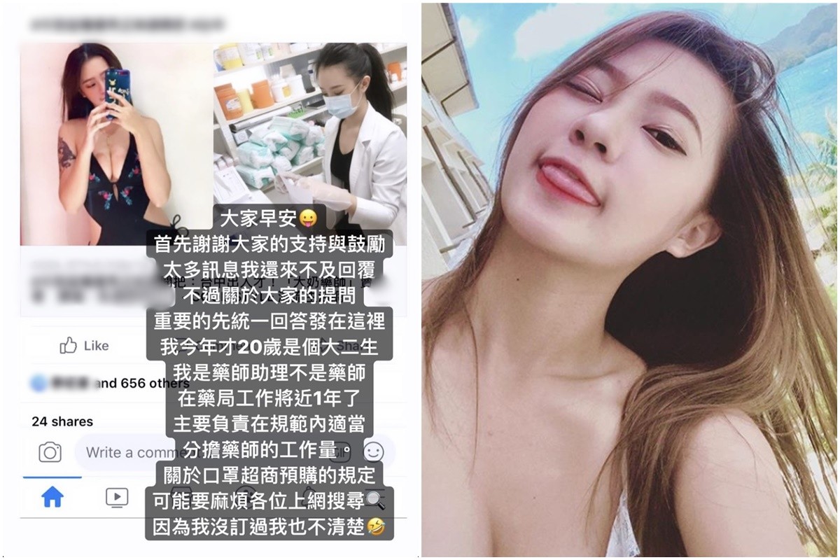 因新冠肺炎影響,口罩成了人人必備的用品,而口罩花樣也成了民眾的議論話題,而網友在討論口罩樣式之餘,也將焦點放在藥局包裝口罩的一名正妹身上,還有網友誤以為她是藥師,讓她一夕間爆紅。不過,經過了一夜,這名正妹似乎被網友熱情嚇傻,趕緊發文澄清,自己並非藥師,只是藥師助理,但也謝謝大家的支持與鼓勵。