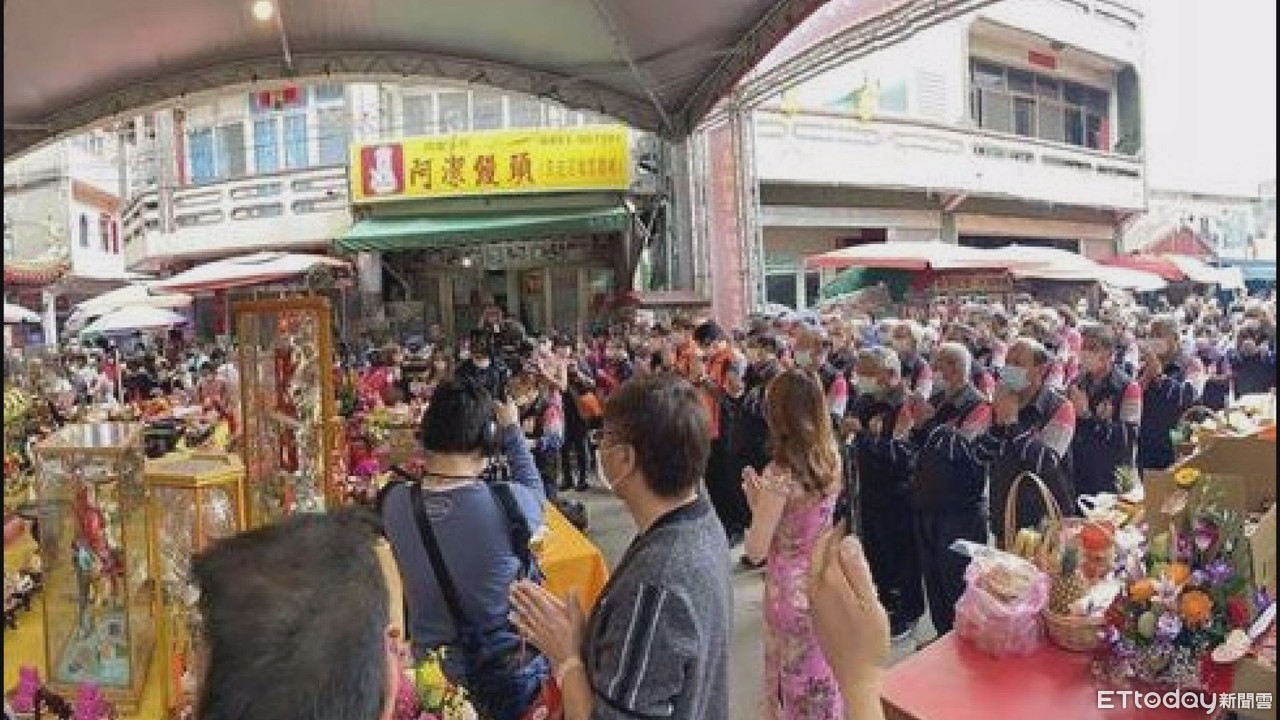 ▲▼廟方特別準備豐富的供品,信眾各個都戴上口罩做好防疫工作。(圖/記者黃孟珍翻攝)