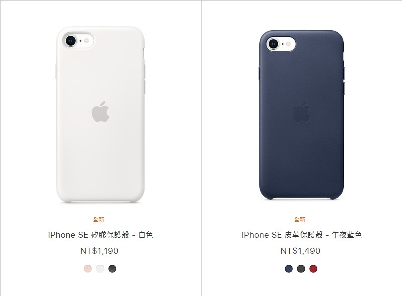 蘋果在 15 日當天發布了平價小尺寸 iPhone SE 新機,而官方矽膠、皮革保護殼也一併販售,價格分別為1190元和1490元。