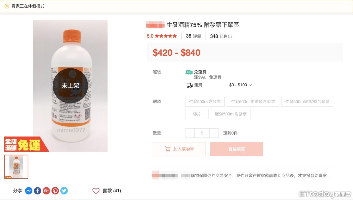 ▲巫姓負責人趁疫情間哄抬酒精價格,在網路上販賣高過2至3倍,獲利20多萬元 。(圖/記者陳以昇翻攝)