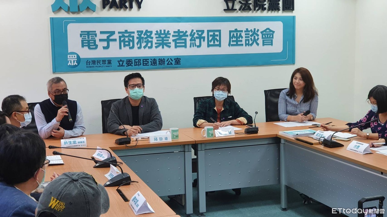 ▲邱臣遠、蔡壁如、陳思宇召開「電子商務業者紓困記者會」。(圖/記者陳家祥攝)