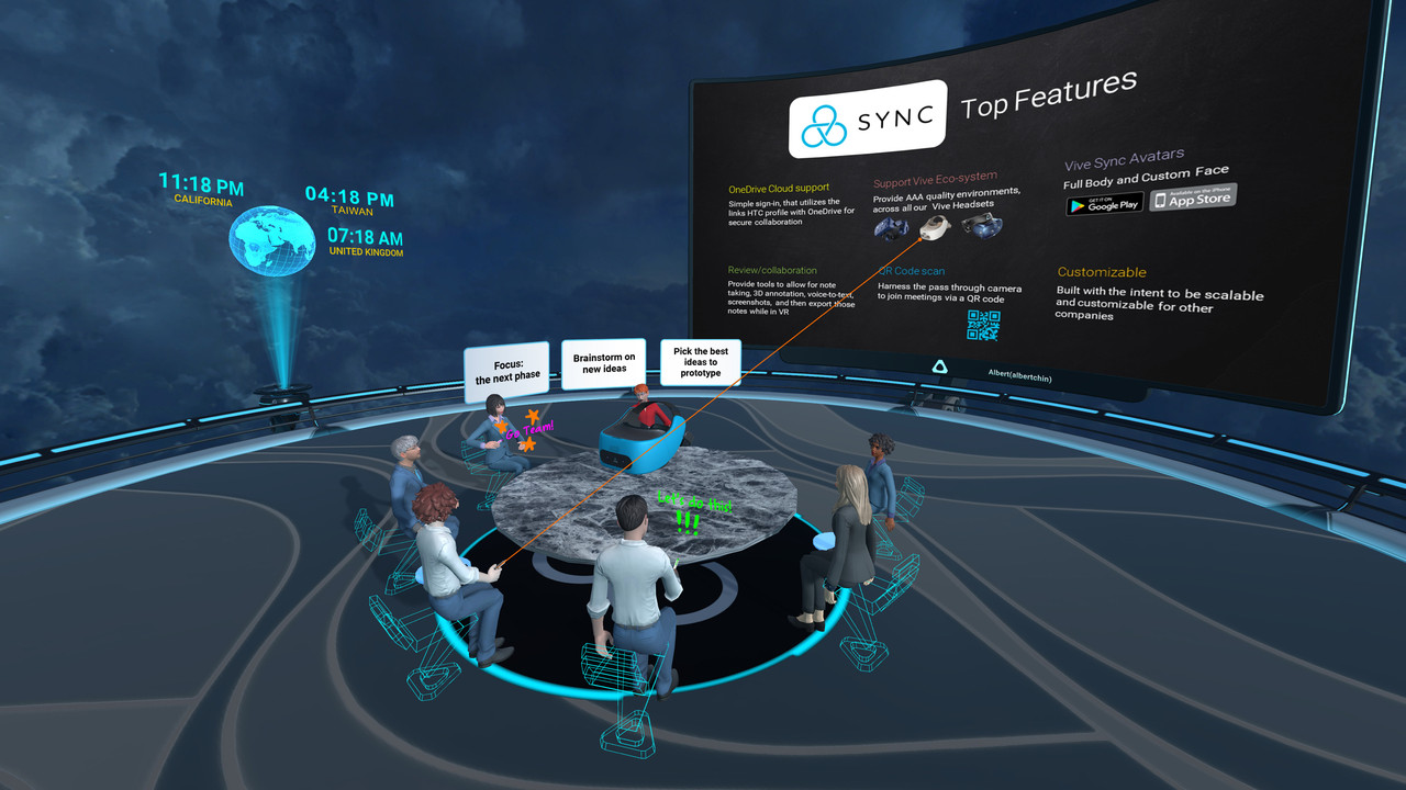 宏達電分享,日前HTC與中華電信行動分公司即透過「VIVE Sync-VR虛擬會議平台」完成台北及英國三地舉行的5G策略合作會談,會議結束後並於虛擬共享空間中進行長官合影,並在會議中進行各式檔案分享、製作筆記、做圖標記、影片播放等功能,降低公司溝通上的營運成本。