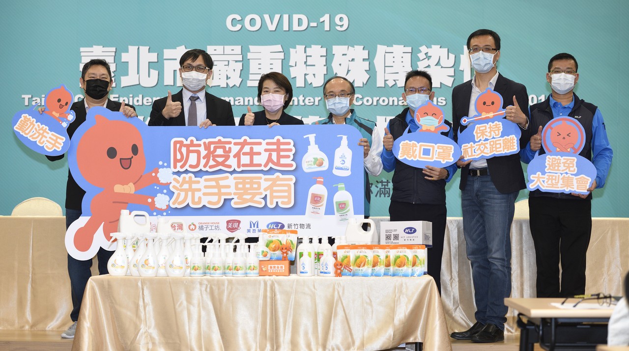 ▲淘寶台灣號召橘子工坊等本土品牌,共同捐贈35,000瓶抗菌洗手乳與3,300公升殺菌噴霧予台北市政府,助校園做好防疫工作。(圖/記者湯興漢攝,以下同)
