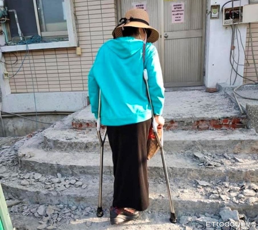 ▲黃小姐的母親吳小姐患有小兒麻痺行動不便,每天上下班被迫走崎嶇不平整修中的樓梯,吳女向主管反映,竟遭對方嗆聲。(圖/記者林悅翻攝,下同)