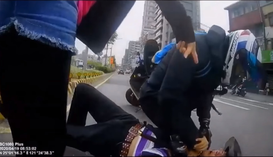當時教練騎在內線道,遭程男逼車攔下後嗆聲「你剛剛比的是什麼?」並從車廂拿出甩棍朝教練攻擊,教練見狀一把抓住對方,將他給撂倒在地壓制;此時程男女友高8度慘叫道「啊~不要,你幹嘛打他,你手放開!」當下教練也傻了,邊壓制對方邊回說「我打他?他先打我耶?」並要求路人協助報警,程男踢到鐵板當下直說對不起。