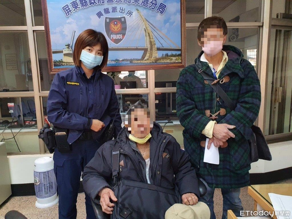 東港警分局興龍派出所警員蔡偉志、許芸芸二員,於日前執行巡邏勤務時,接獲民眾報案稱有一名老翁神情恍惚呆坐路邊需警方協助,警方獲報後隨即趕往現場了解,於抵達現場後詢問他的年籍資料,但他無法表達自己身份,員警於是先將該他帶回所內安置照顧。