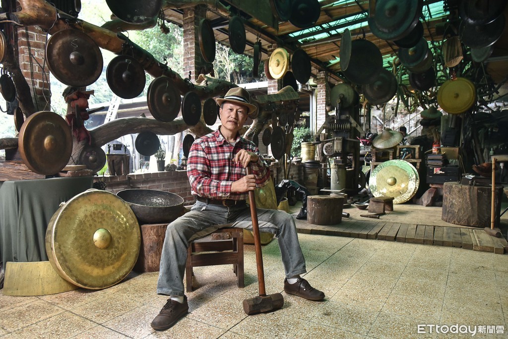 ▲吳宗霖的銅雕製作不易,端靠手上那把沉重的鐵鎚,將銅板不斷敲打成自己想要的形狀。(圖/記者李毓康攝)