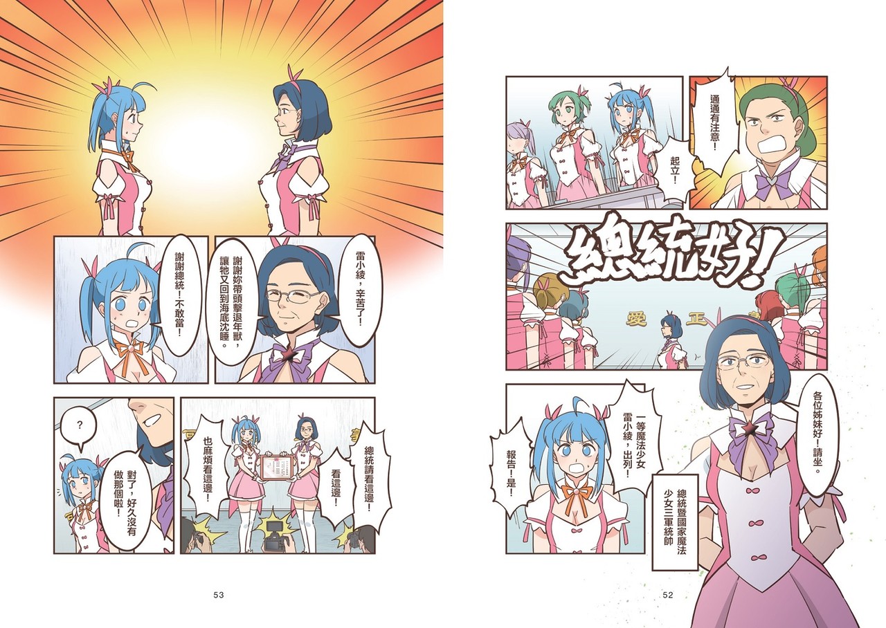 ▲《入伍吧!魔法少女》由漫畫家謝東霖與綜合口味共同創作,其中「魔法少女三軍統帥」角色更以總統蔡英文為藍本。(圖/時報出版提供)