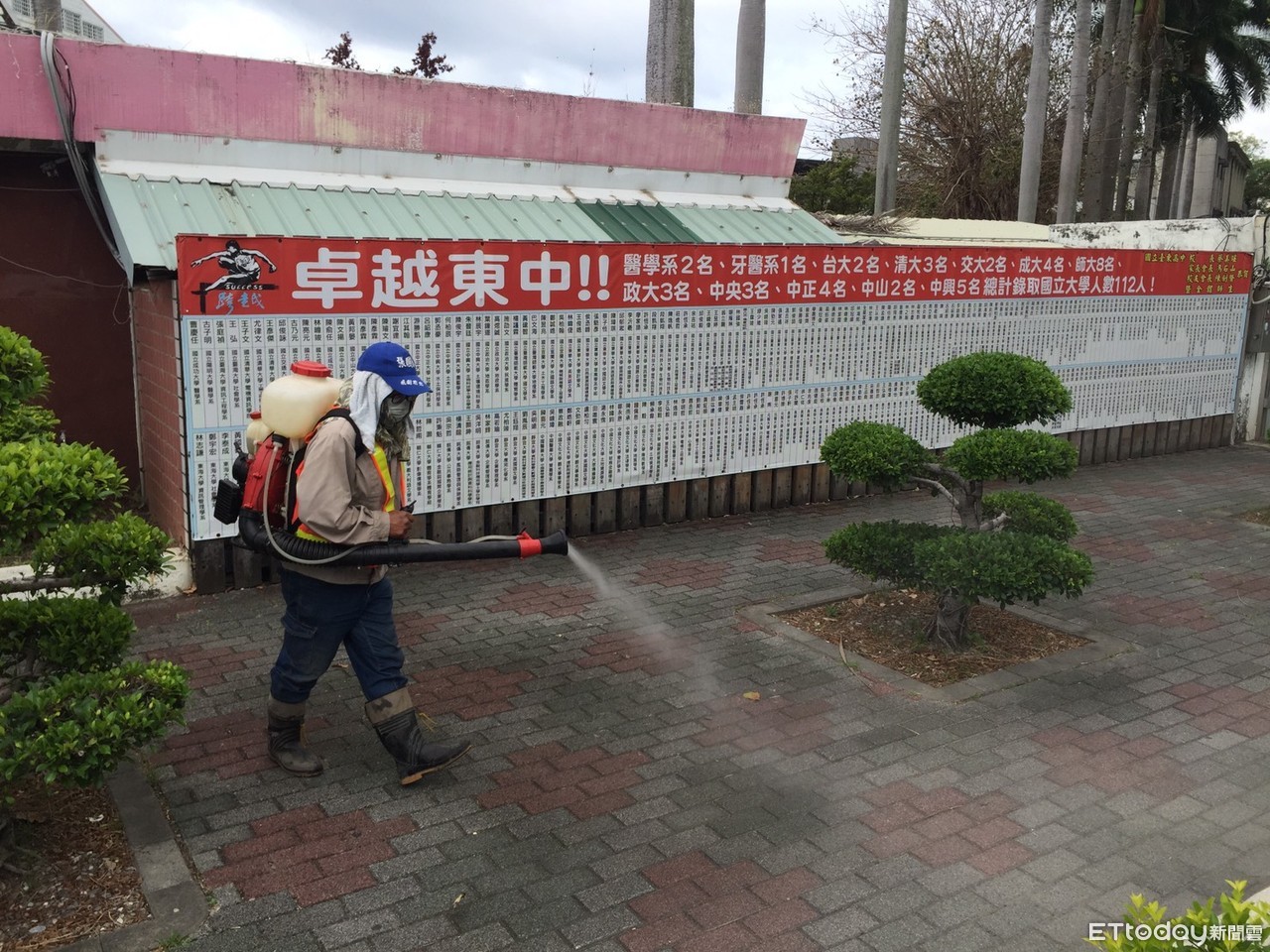 台東高中表示,染疫艦隊8名官兵18日曾在台東高中大門口集結,校方完全不知情,但保持高度警覺,隔天就消毒,確保師生上學安全,環保局今天再對東中進行預防性消毒。