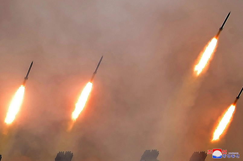 ▲ 網友稱,23日北韓將發射武器落入南韓市區,將建築物炸成灰燼。(示意圖/朝中社)