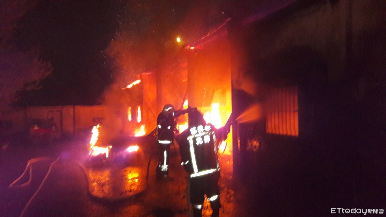 ▲消防隊人員花了2個多小時,終於將火勢控制住,但整間民宅已經付之一炬。(圖/記者黃孟珍翻攝)