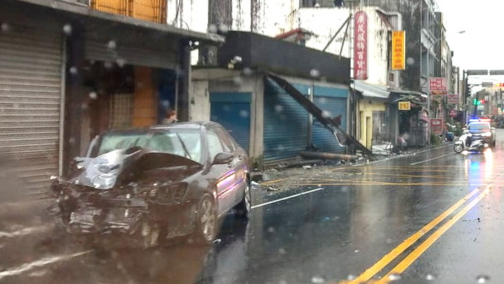 「碰」好大一聲,23日上午,冬山鄉廣興地區一服飾店前電線桿應聲折斷,店的遮雨棚也被撞落,廣興派出所警員獲報到場,發現駕駛人於肇事後自行離開未在現場,目前無人受傷,經調查肇事原因應是因雨天、加上車速過快失控所致,未發現有飆速情形,正通知車主(駕駛人)到案說明釐清案情。