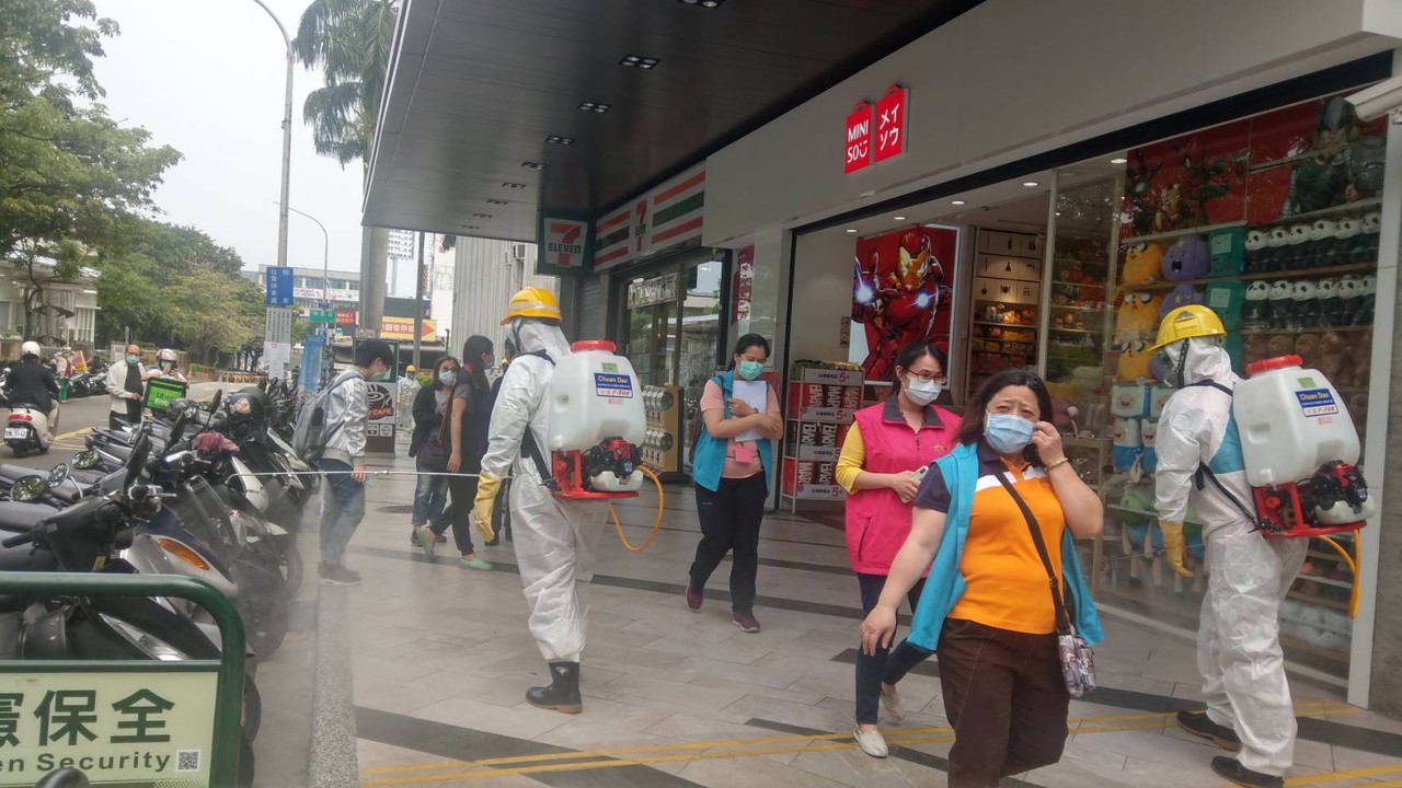 ▲台中市環保人員前往一中商圈消毒。(圖/記者鄧木卿翻攝)