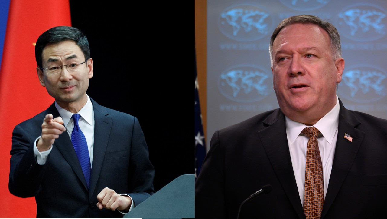 ▲中國大陸外交部發言人耿爽、美國國務卿蓬佩奧(Mike Pompeo)。(圖/路透/合成圖)