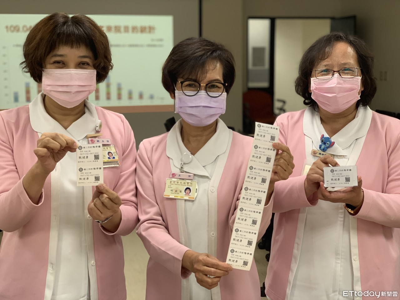 ▲台北榮總護理團隊秀出陪病與醫療探病專屬貼紙。(圖/記者嚴云岑攝)