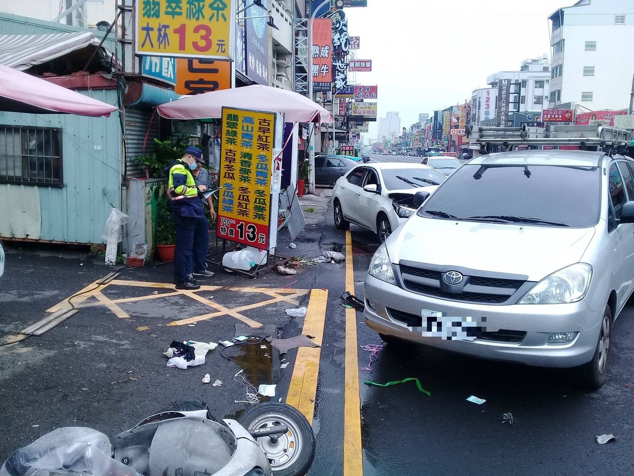 ▲嘉義市友愛路車禍,一旁汽機車受波及。(圖/讀者提供)