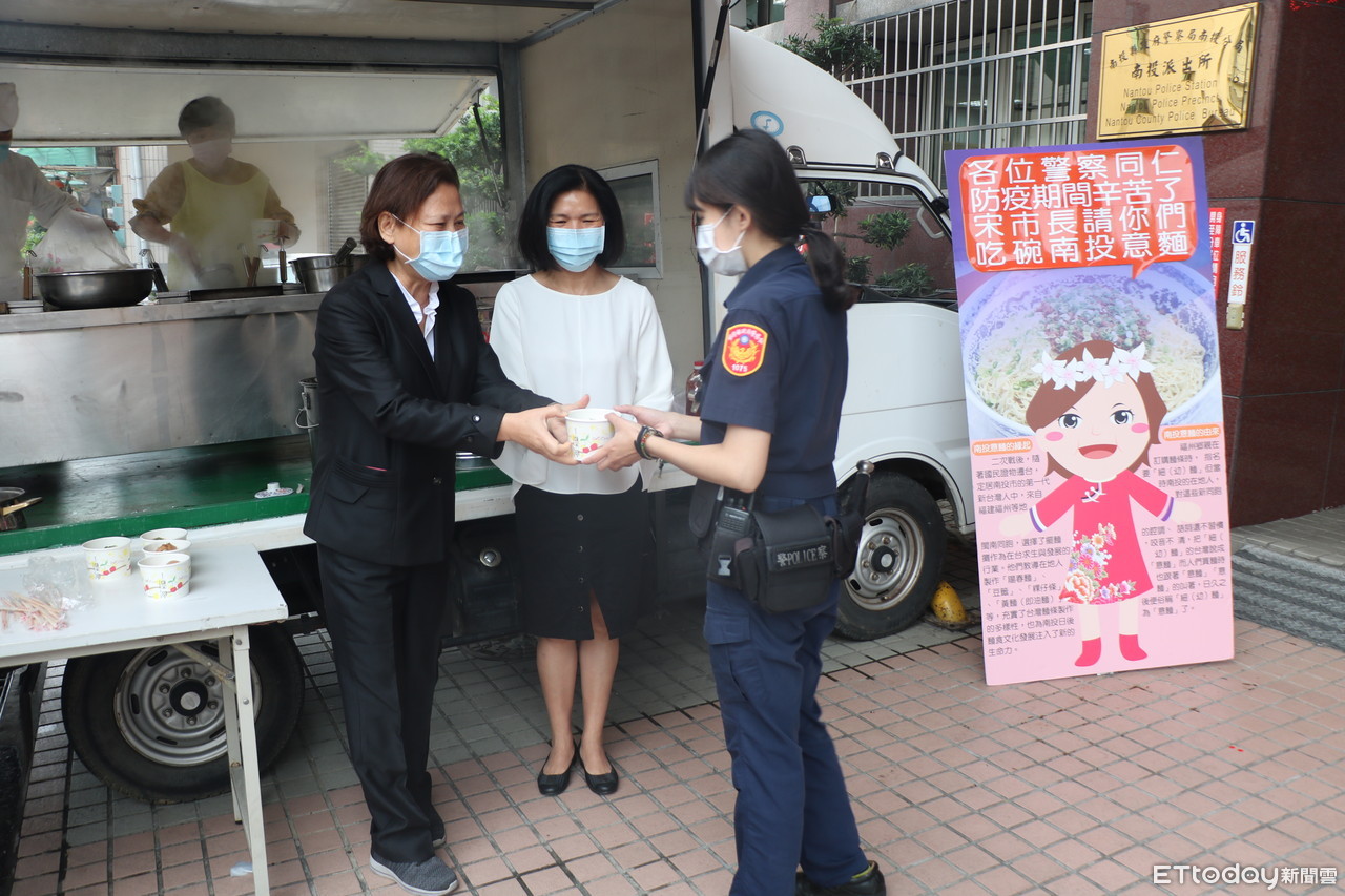 ▲▼南投市長宋懷琳到南投警分局暖心送意麵,增加員警防疫工作體力。(圖/南投市公所提供,下同)