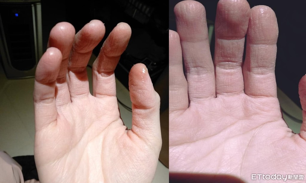 3、疫情期間頻繁穿戴、脫除手套及消毒洗手,導致起初自己的手起了紅疹,又乾又癢又痛,不過在擦拭了抗過敏舒緩的護手霜及趁休假讓手休養後,我的手沒再起紅疹及有不適情形出現。