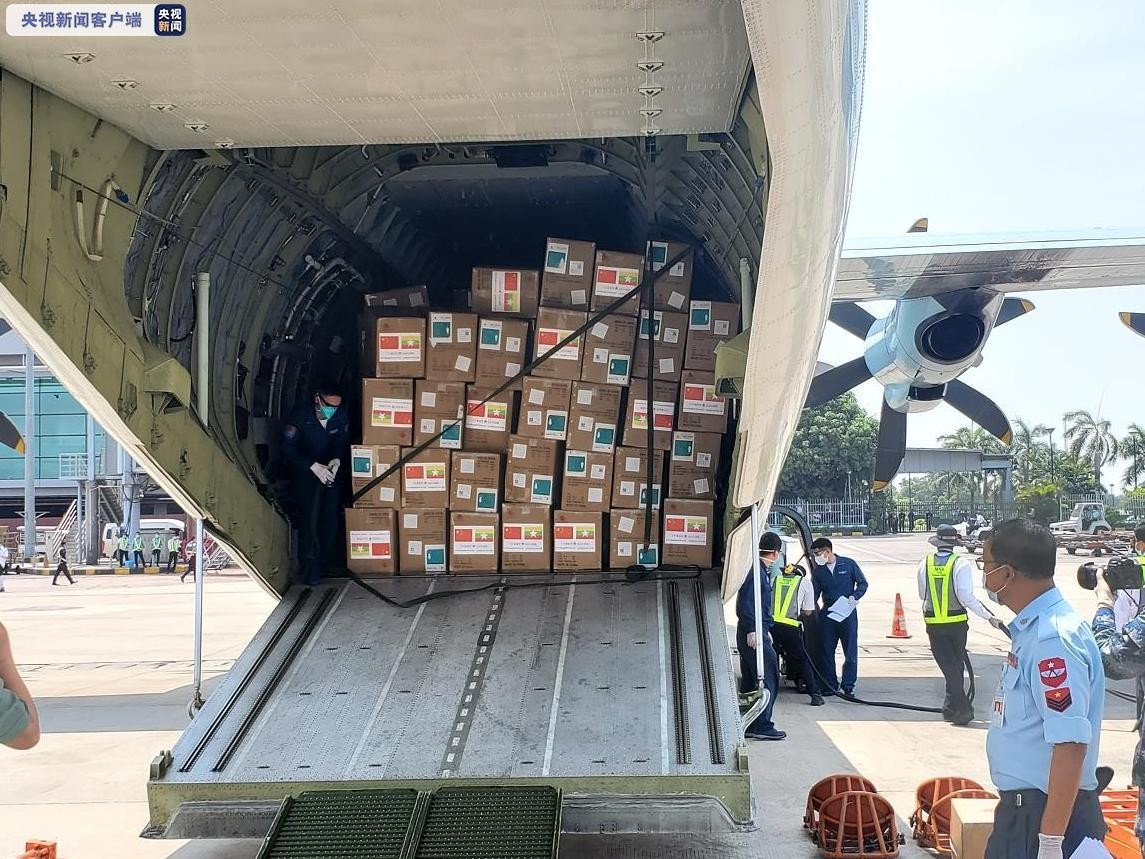 據央視報導,與該中國軍隊醫療專家組一同抵達緬甸仰光的,還包括新冠病毒核酸檢測試劑盒(PCR法)、醫用防護口罩(KN95)、醫用外科口罩等。待軍機降落時,緬甸仰光軍區司令員德蓬少將和中國駐緬甸大使陳海到機場迎接。