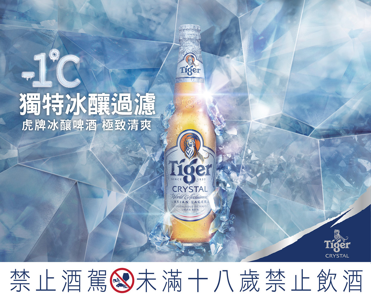 Tiger虎牌啤酒2020年4月推出台灣首支順飲型啤酒「Tiger Crystal 虎牌冰釀啤酒」,獨特-1°C冰釀工藝成就極致輕爽順口口感,抗日照啤酒花能不畏陽光,即使是在台灣炎夏飲用,也能維持高品質,不管是獨飲小酌或是與朋友遠距乾杯,都能讓你盡情享受。