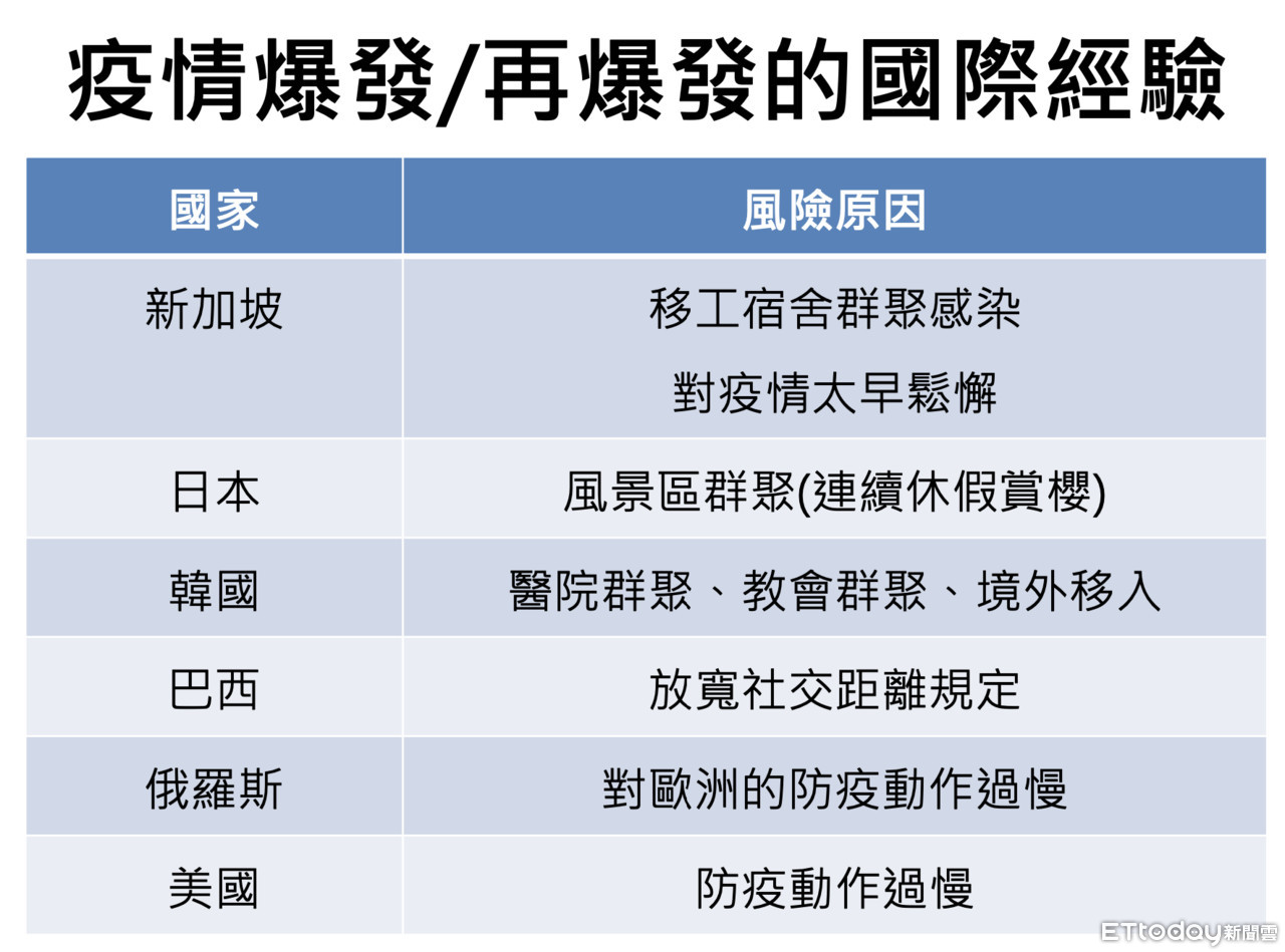 ▲新北市衛生局彙整近期國外二次爆發感染主因。(圖/新北市府提供)