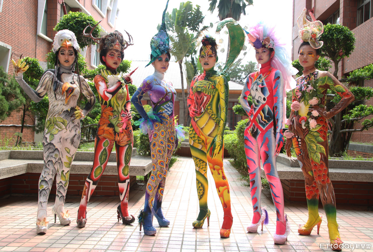 今年的作品,風格相當多元,有班級走叢林風,透過高超的全身彩繪技術,打扮成獨角獸、眼鏡蛇、老鷹、孔雀、蝴蝶等猛獸昆蟲,頭飾及武器,多數是回收物,像是考卷、抹布、樹枝、垃圾袋等材料,反覆加工、上色製成。另也有班級走古埃及風,學生將黑、白素色服裝細心妝點,發揮造型功力,讓埃及豔后、法老王、蛇姬等角色,活靈活現地遊走在校園中。