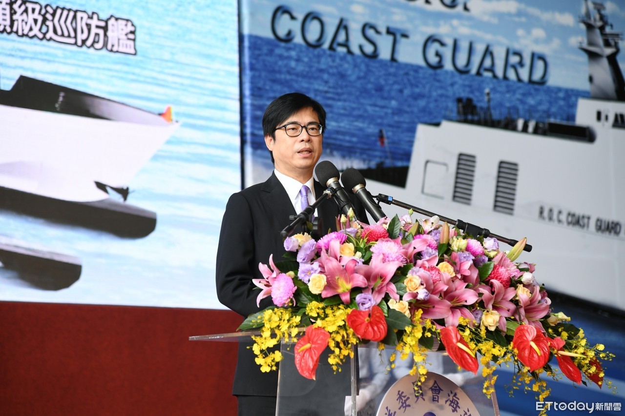 ▲海巡署第一艘600噸級巡防艦亮相,行政院副院長陳其邁出席交船典禮。(圖/行政院提供)