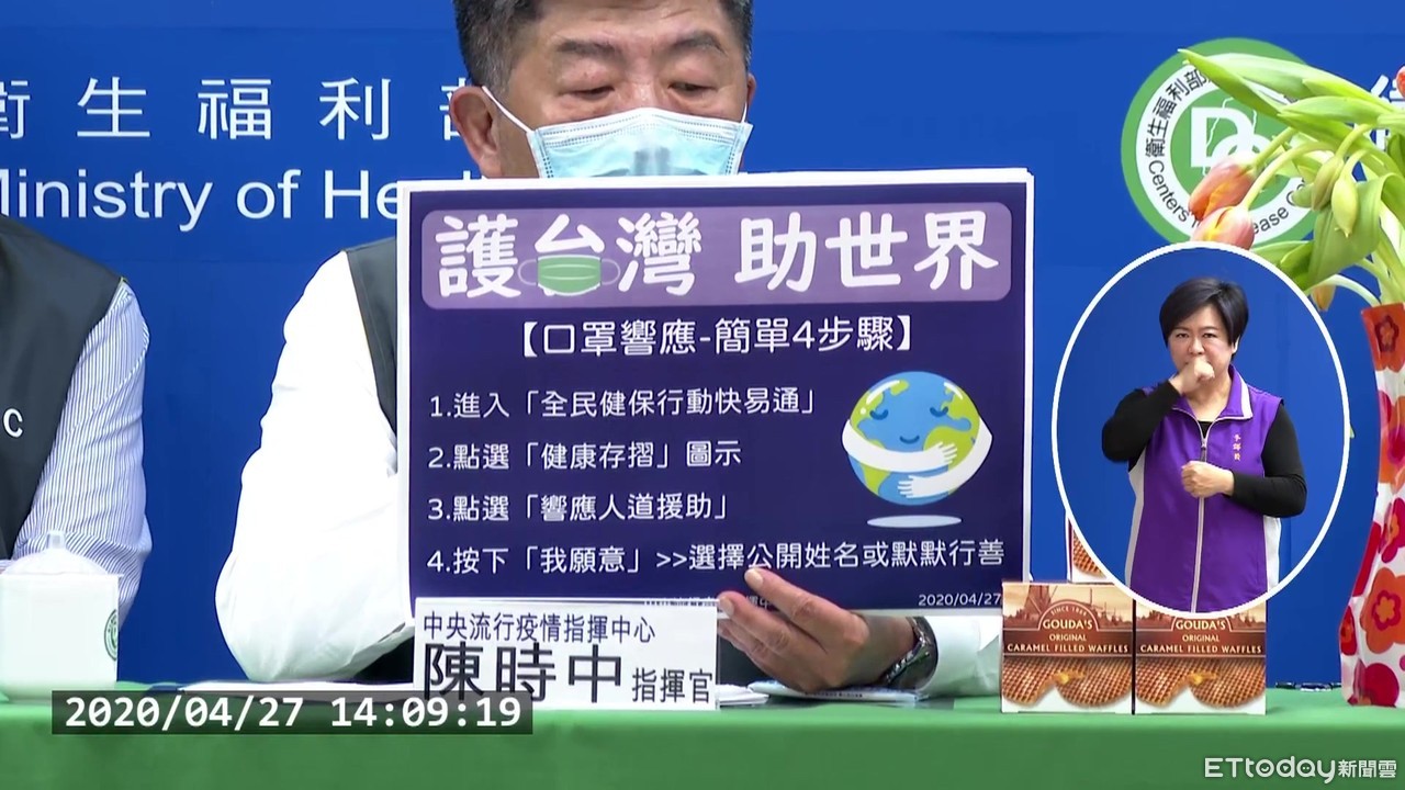 今日中央流行疫情指揮中心記者會上出現荷蘭來台的鬱金香,答謝台灣捐贈口罩之情,陳時中也提到,國內口罩供應量漸漸上軌道,在經濟部與各個廠商以及國家團隊的努力下,產值很好也很穩定,因應國際上互助精神,決定推出這樣的運動。