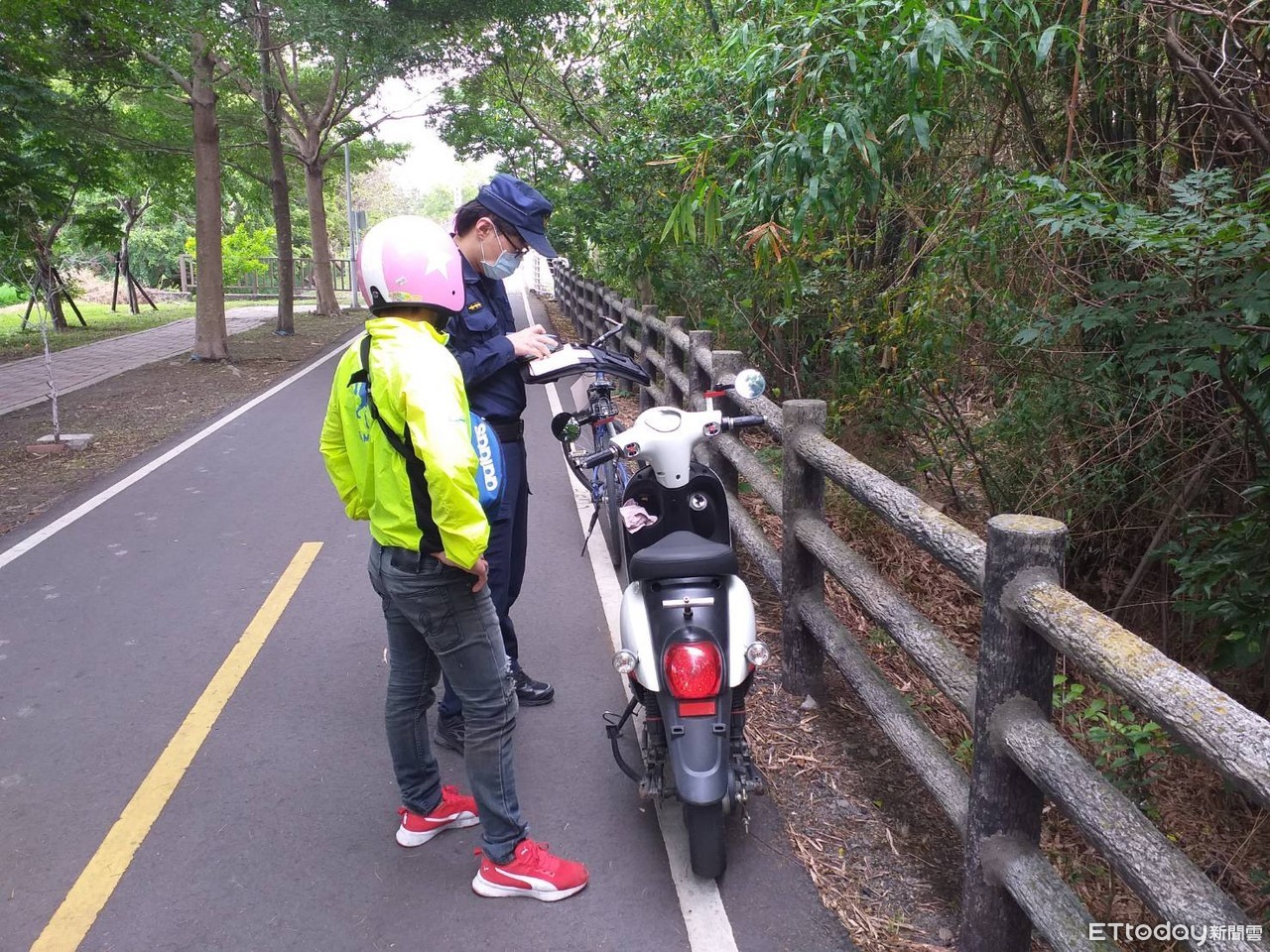 ▲大雅警分局自25日起正式於該綠園道開罰取締電動自行車 ,2天已開出13張罰單。(圖/警方提供)