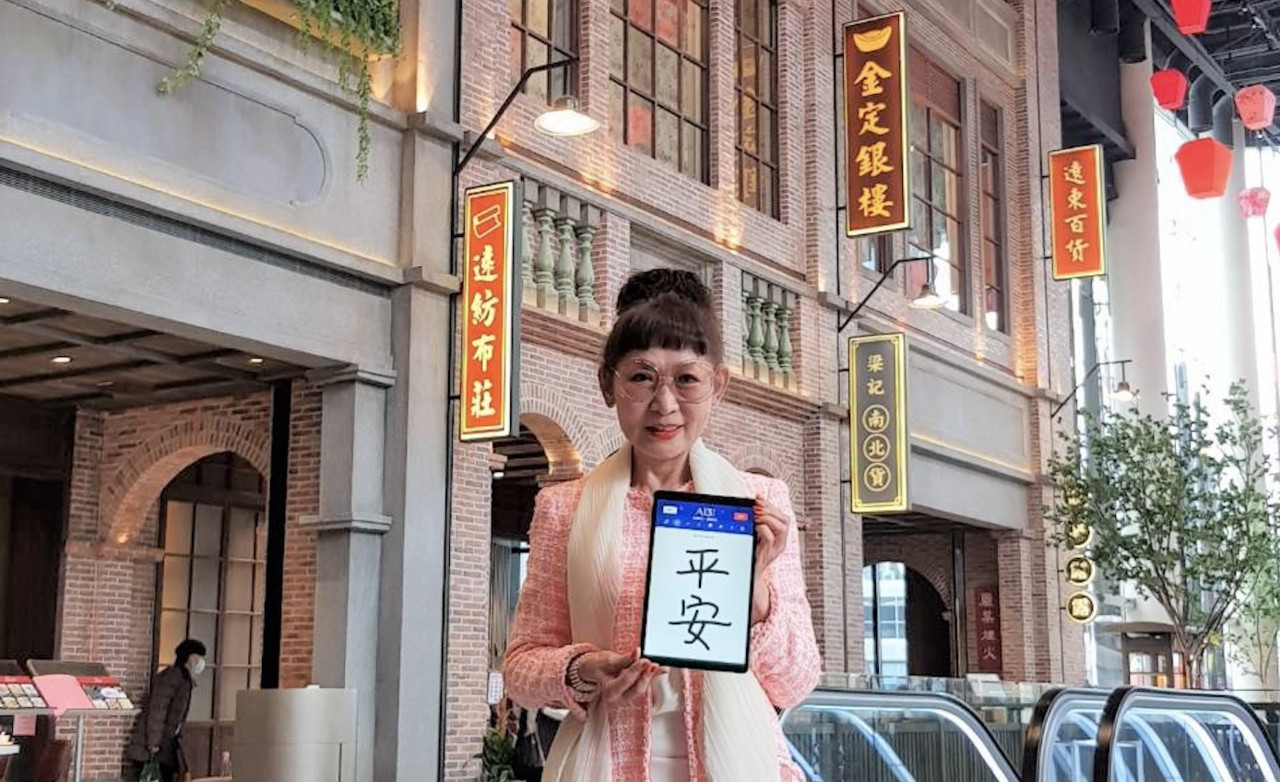 ▲遠東百貨總經理徐雪芳在數位天燈上寫下「平安」二字,祈願國泰民安、事事順心。(圖/記者蔡惠如攝,下同)