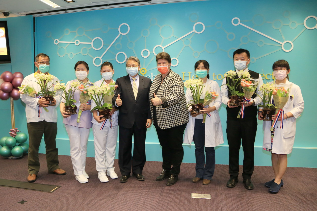 林紹雯說,醫護人員在防疫路上非常艱辛,要勇敢堅定地往前走,需要社會大眾的支持與鼓勵,她回去將告訴所有第一線臨床同仁,「我們得到更多勇氣,所以在防疫的路上要更堅定!」