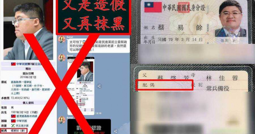 ▲維基百科資訊遭竄改配偶欄為楊蕙如後,立委蔡易餘馬上在臉書上自清絕無此事。(圖/CTWANT提供,下同)