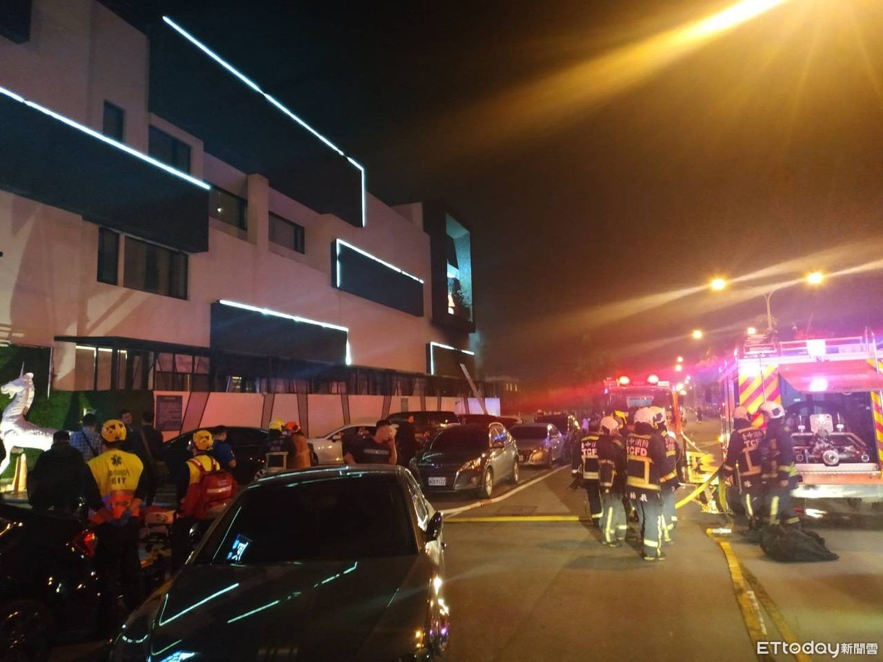 ▲車手在摩鐵內開槍又縱火,消防人員緊急疏散房客。(圖/台中市消防局提供,以下同)