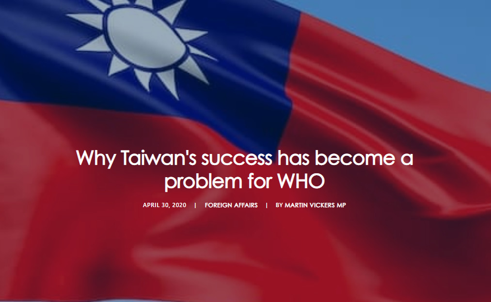 台英國會小組共同主席、下議院議員維克斯(Martin Vickers)今天在英國政治評論網站Comment Central發表專文,讚揚台灣防疫成就,呼籲世界衛生組織(WHO)邀請台灣參與。