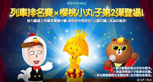 ▲《LINE 熊大農場》列車排名賽×櫻桃小丸子第2彈登場。(圖/LINE GAME提供)
