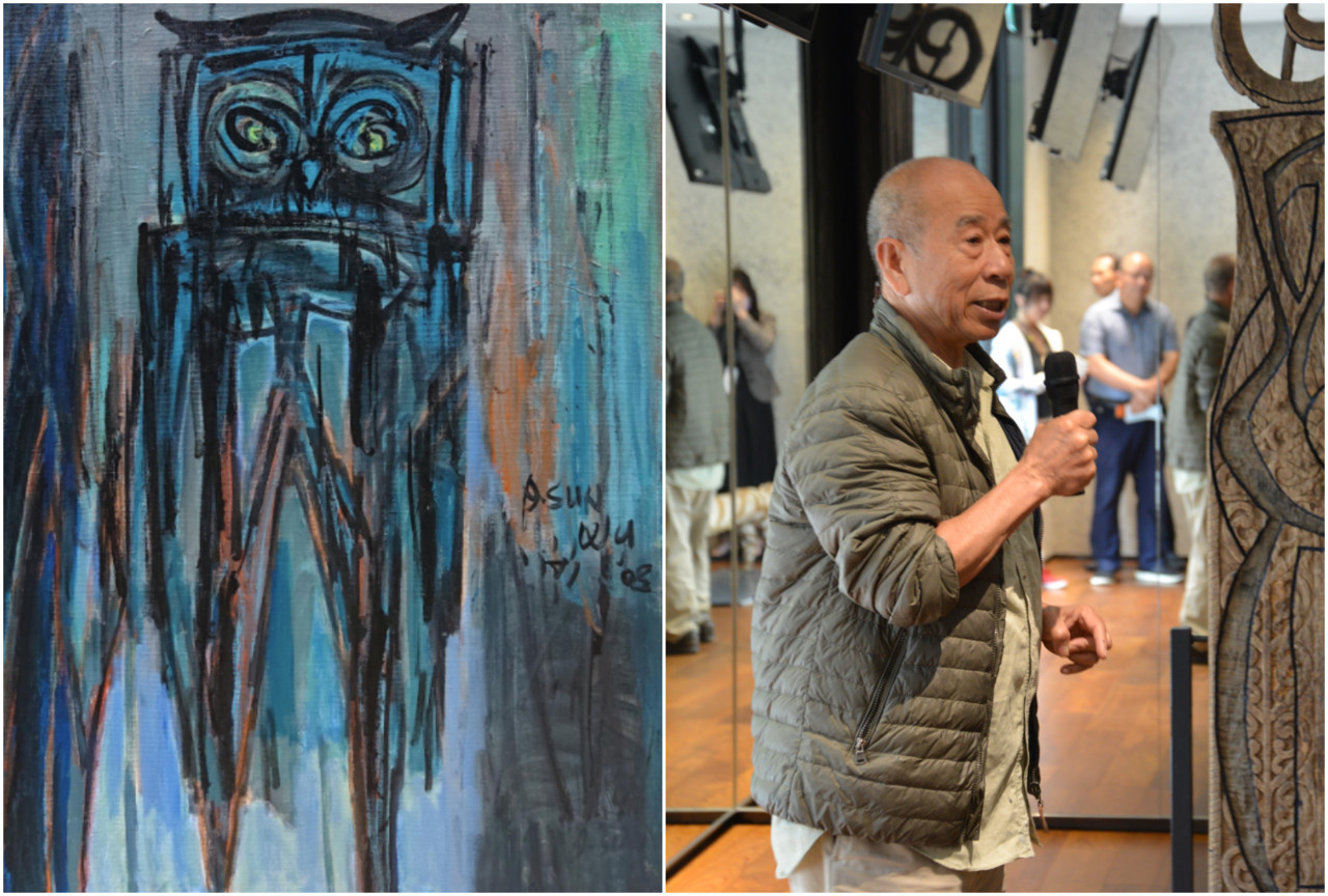 台灣重量級藝術大師吳炫三以及妻子池上鳳珠,共同舉辦「狂墨・青花・翻飛:吳炫三X池上鳳珠聯展」,共展出66件水墨、壓克力畫作、雕塑及青花瓷等,其中吳炫三有10大創作首度亮相,更第一次曝光12年壓箱寶「一夫當關 萬惡迴避」,他將貓頭鷹視為「夜神」,但畫完後卻藏在畫室12年,透露自己都不太敢看,「因為看起來似乎很有靈性。」
