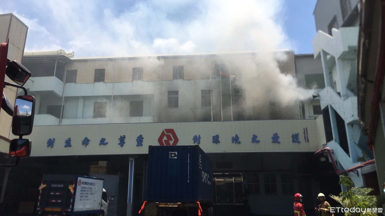 ▲台南市永康區洲尾街41巷1間工廠發生火警,現場冒出明火與濃煙,消防人員全力搶救。(圖/記者林悅翻攝,下同)