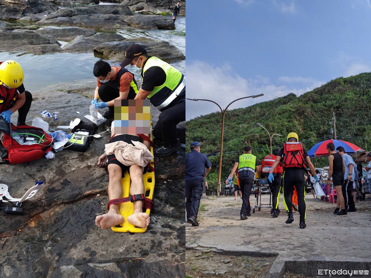 ▲ 男子戲水未穿救生衣,溺水卡在岩石遭人救起,並實施CPR搶救。