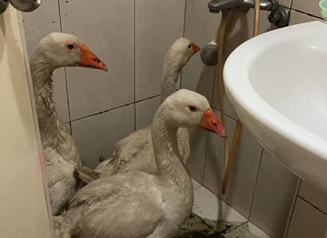 原PO在臉書爆怨公社表示,她的爸爸三不五時就會帶「小動物」回來要他們領養,以前像是大蝗蟲、石龍子、鍬形蟲、八哥等都帶過,不料2日竟然直接帶3隻鵝回家,「聽說是山上朋友不養,所以帶回來」、「台北市『好窄』區,我該怎麼養」、「要我宰了,臣妾做不到啊也啊。」