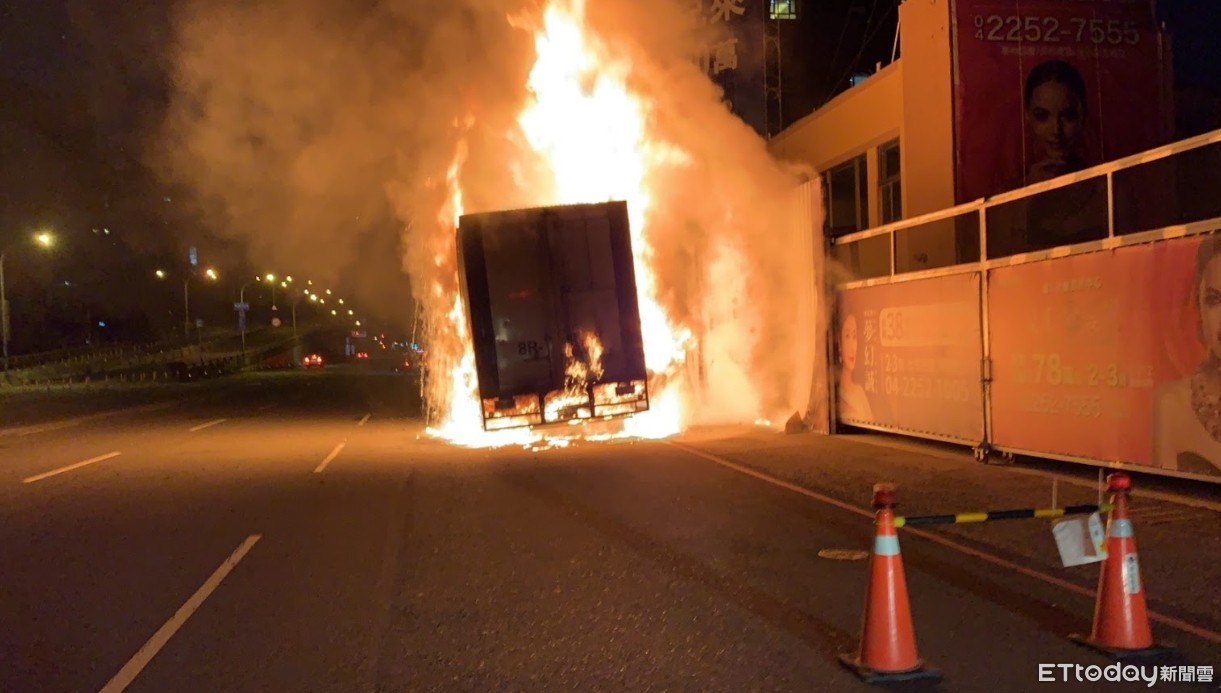 消防隊表示,4日清晨4時29分許接獲報案,稱西屯區台灣大道三段有貨車起火,駕駛已逃生,急需協助搶救,黎明消防分隊遂派遣4車11人,由分隊長鄭培齡帶隊前往滅火,到場發現該貨車已起火燃燒,立即佈署水線搶救。