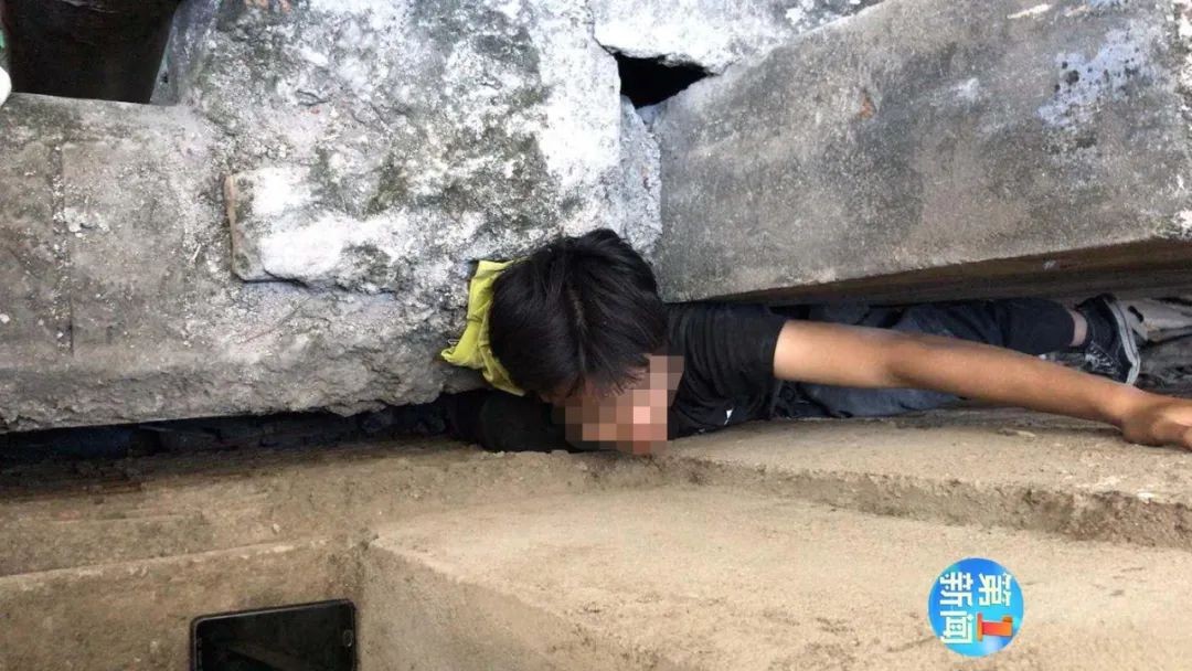 小伙子胸部和臀部被卡,生命體徵良好,其中胸部被卡位置剛好為一側牆體的承重柱,破拆困難。消防人員幾經努力,經過1個多小時的艱難救援,才成功把小伙子從牆縫裡拉出來,還好身體一切正常。