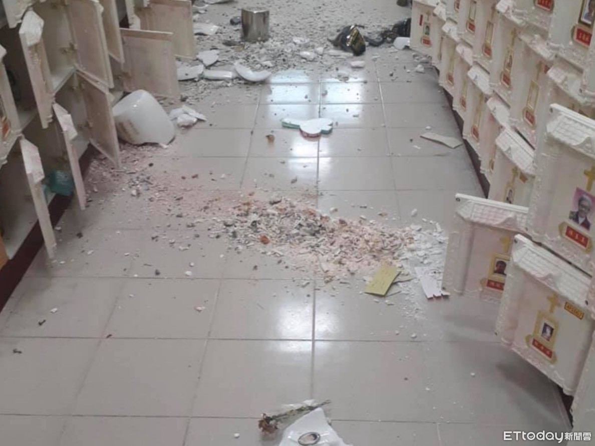 台東縣成功鎮公所3日晚間已公告表示,因為地震,導致鎮內第九公墓孝思堂4樓4個、5樓8個共計12骨灰甕傾倒毀損。公墓管理人員已在第一時間緊急處理移放至安全處所。將持續聯絡家屬到場查看確認並盡力協助恢復。