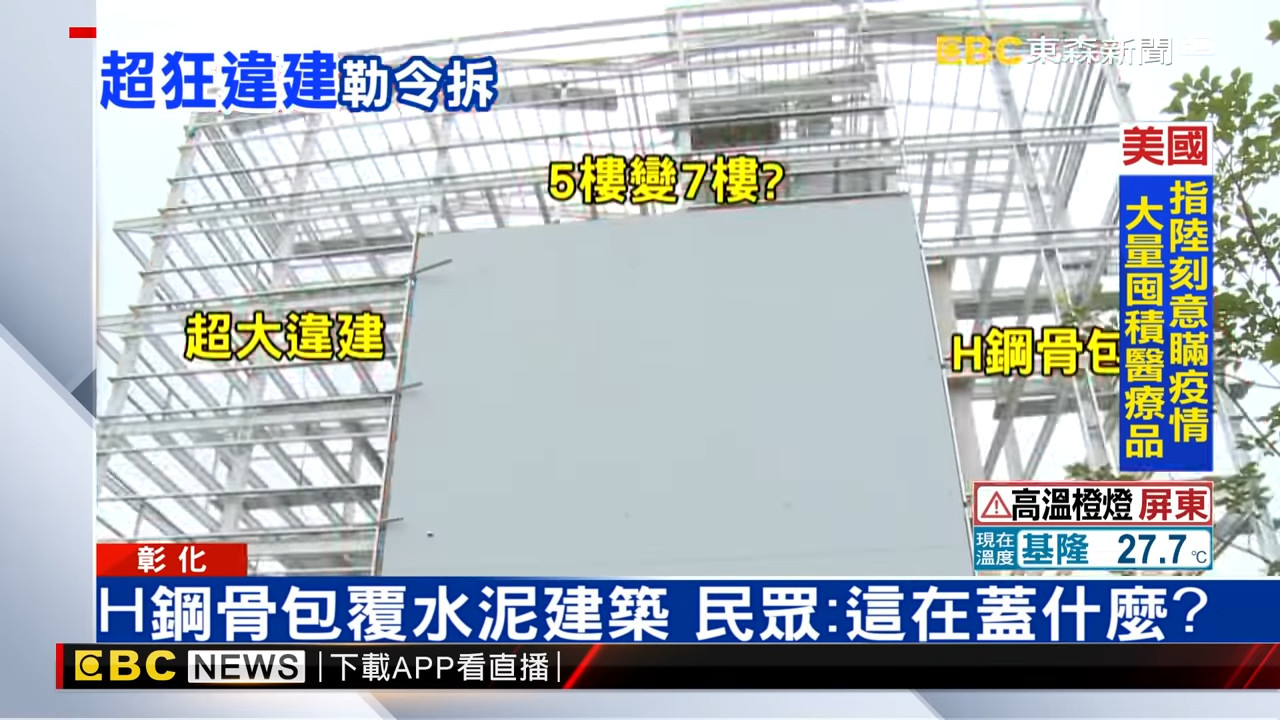 彰化縣建設處代理處長陳威宏表示,「他是屬於違章拆後重建的樣態,依照建築法拆後重建,我們會將這個樣態制止不從,我們會移送法院來偵辦,他會被處以1年以下有期徒刑。」