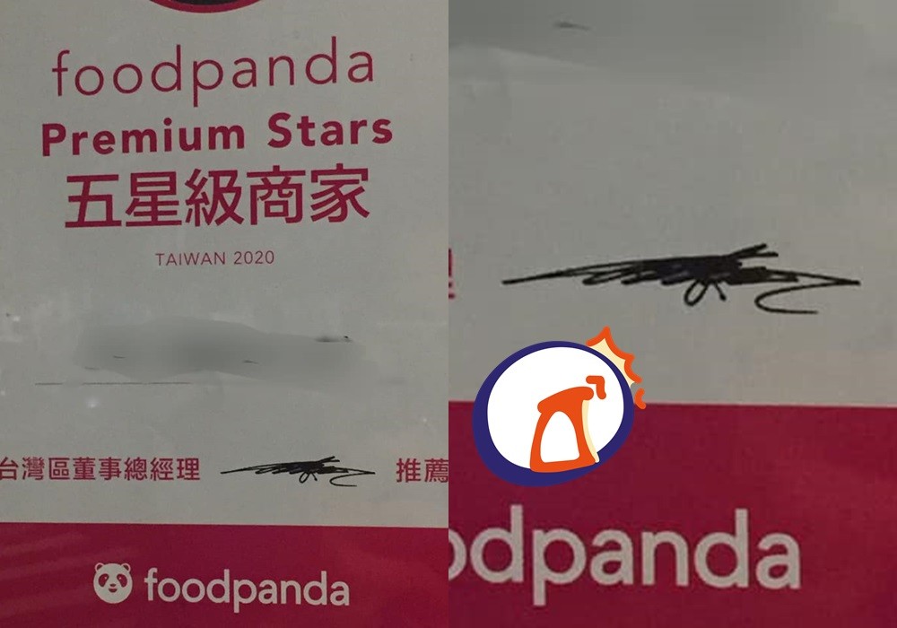 ▲foodpanda的推薦海報上印有董事總經理的簽名。(圖/翻攝自爆廢公社)