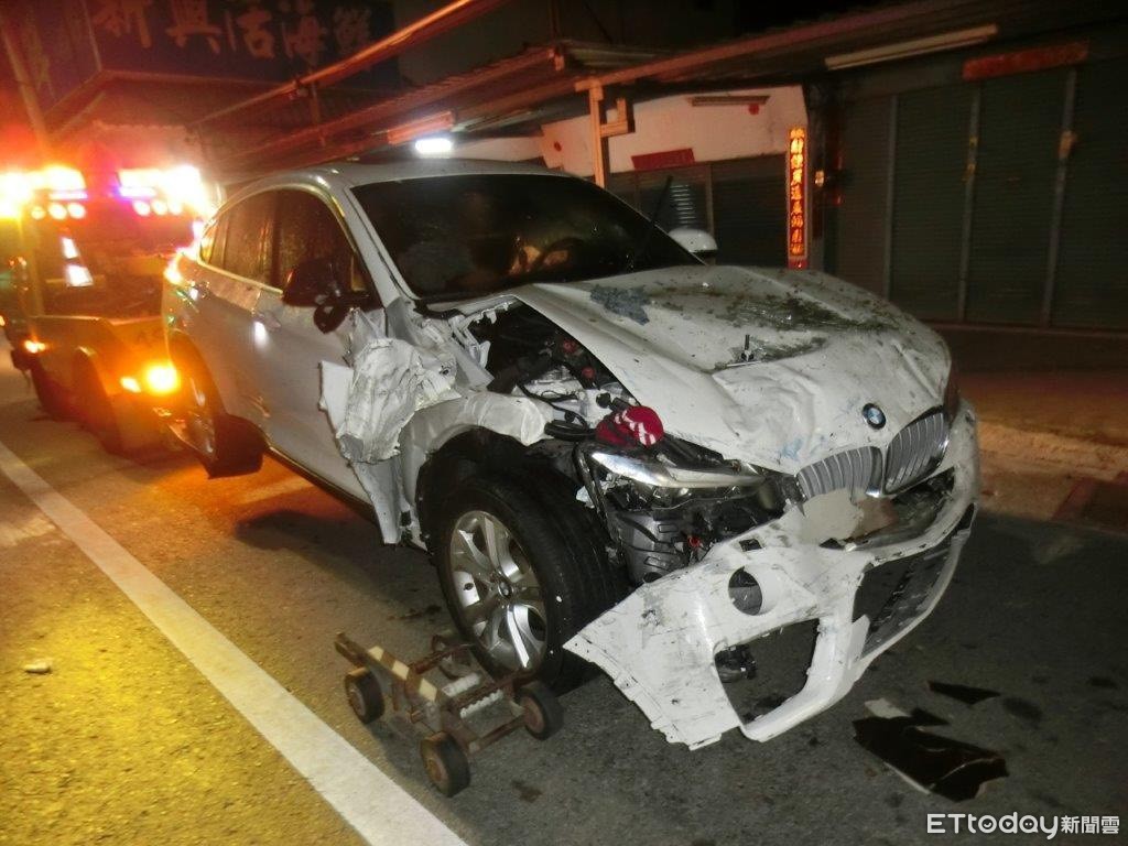 屏東縣許姓駕駛4日深夜駕駛白色BMW自小客車,衝入屏東縣林邊沿海路相當有名的一家鮮魚湯店,發生巨大響聲,幸當時店內已休息,僅撞壞店內攤架等生財工具,自小客車車頭則全毀。