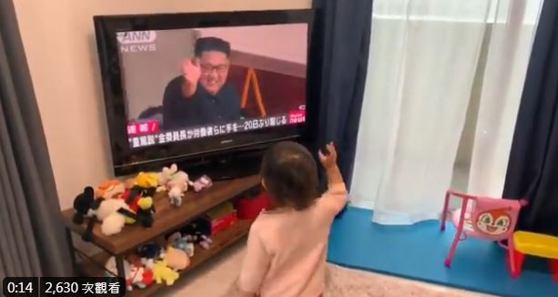 日本網友「@yonaguni_color」2日在推特上發布一段影片,只見當時電視新聞正在播報金正恩微笑揮手的畫面,沒想到推主的女兒一看到後,激動地走到電視前跟著揮手,興奮大喊「爸爸!」接著便聽到推主在一旁尷尬急著糾正,「才不是爸爸啦!」