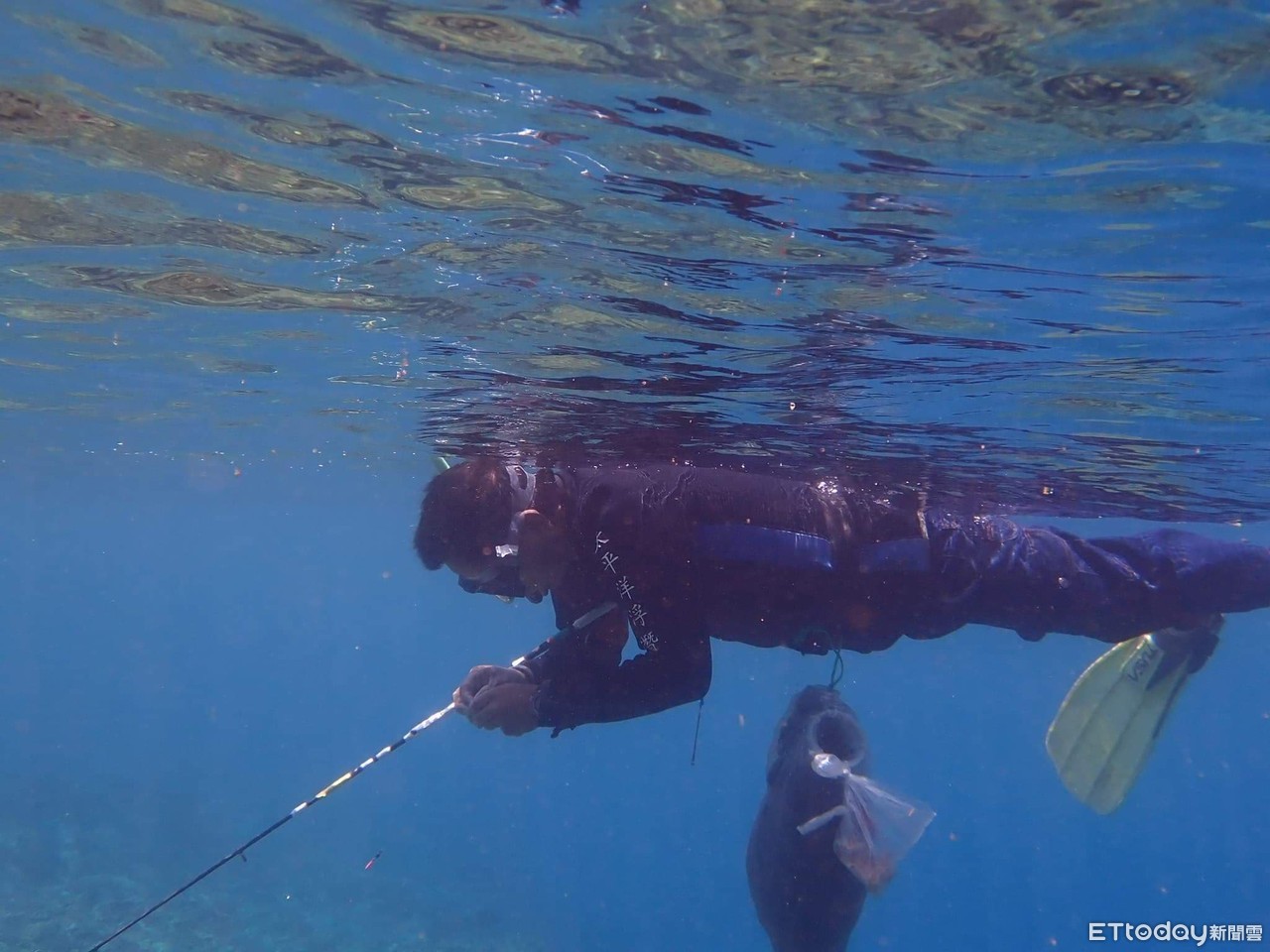 ▲▼潛水客違規水中釣魚,被拍了下來。