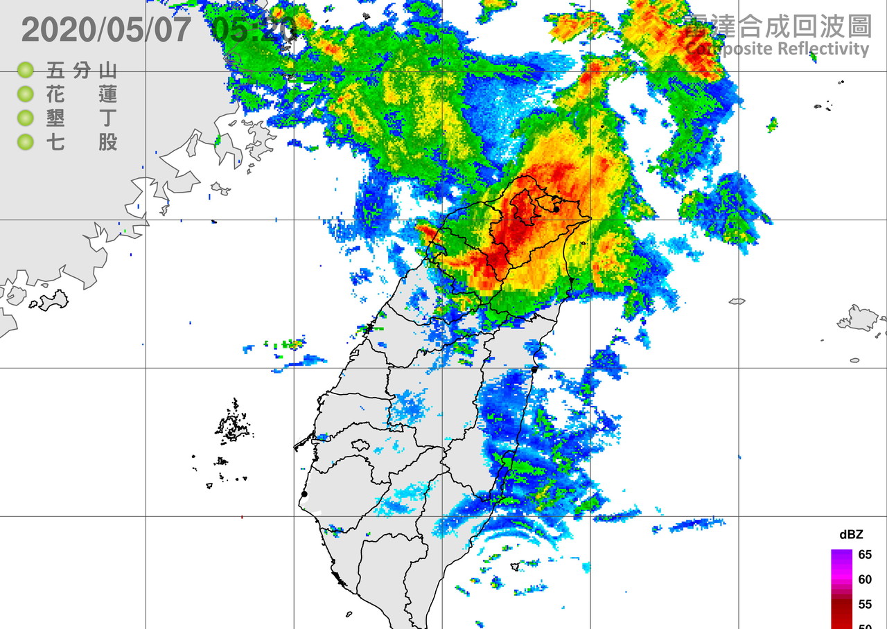 ▲今晨雷達回波圖顯示有旺盛對流移入。(圖/氣象局)