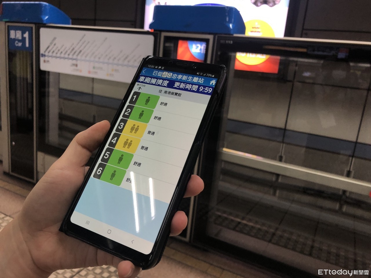 ▲北捷APP可查詢車廂擁擠度。(圖/記者楊亞璇攝)