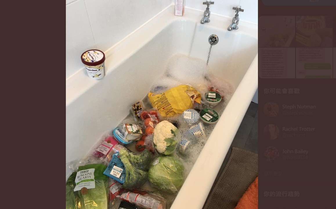 擔心新冠病毒會附著在手上、物品上,因此不少人在回家後都會用酒精做好消毒程序。國外網友EvieLancaster在推特發文表示,媽媽從Tesco超市採購了一些商品,回家後竟把所有東西包括食物都放在浴缸裡,並倒入肥皂水消毒,而且全部都沒有拆包裝,PO文引來其他網友熱議。